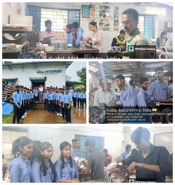 Department of Electrical Engineering organized Industrial Visit for TYEE class to the MAULI ENTERPRISE IN MIDC KUDAL, to gain practical knowledge about motor winding processes, electrical component assembly, and industrial operations. The visit was organized to provide students with hands-on exposure to industrial practices and bridge the gap between theoretical knowledge and practical application. Students were mentored and guided plant in-charge Mr. Wargaonkar Sir along with his supporting staff. Student asked many questions regarding selection criterion of winding wire and numbers of turns. The entire visit is successfully organized by faculty member H.O.D Mr. H.A Pawar sir , Mr. S.S.Ghadigaonkar sir and Ms. T.R.Shenai mam